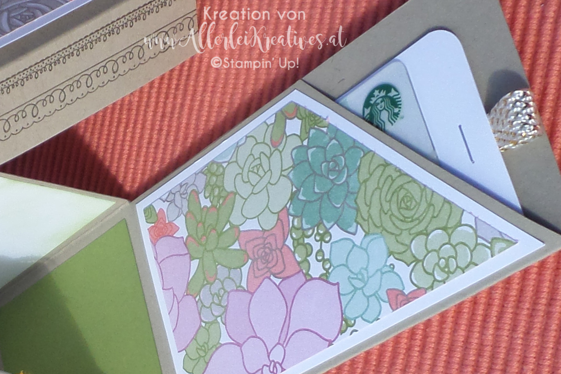 Die beiden aufklappenden Seiten bieten Platz für Grüße bzw. eine Gutscheinkarte.
