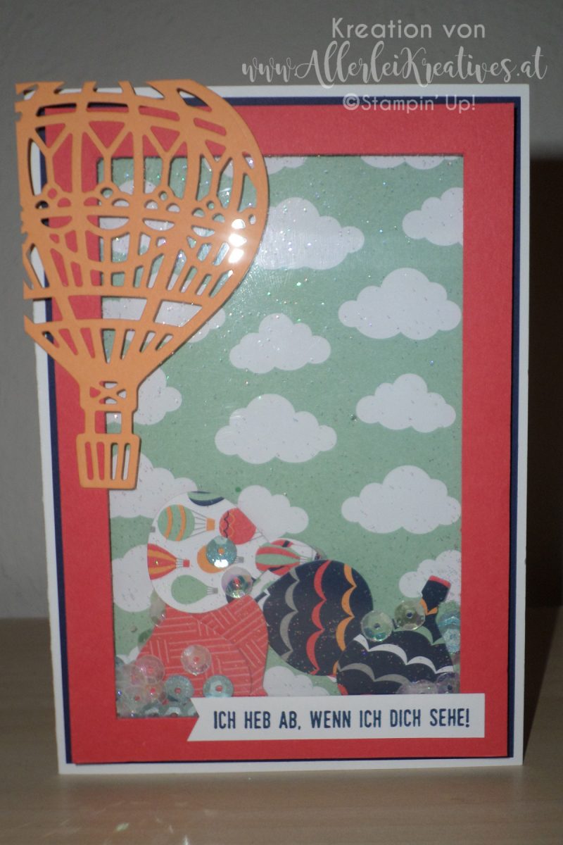 Ich habe mit dem Designerpapier „Traum vom Fliegen“ an einer Schüttelkarte gearbeitet.