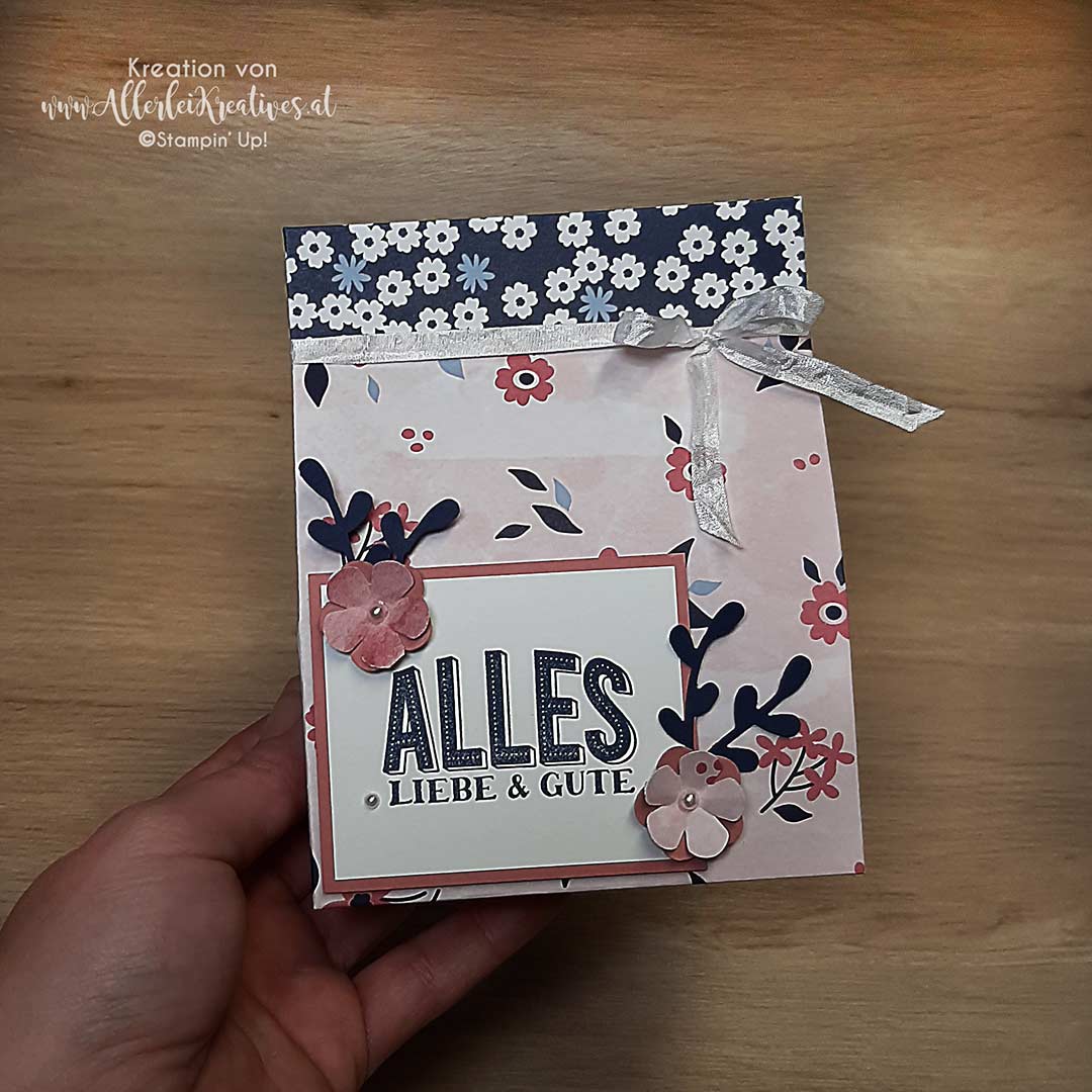 Designerpapier „Papierblüten“ (aus der Sale-A-Bration Aktion) gewerkt.