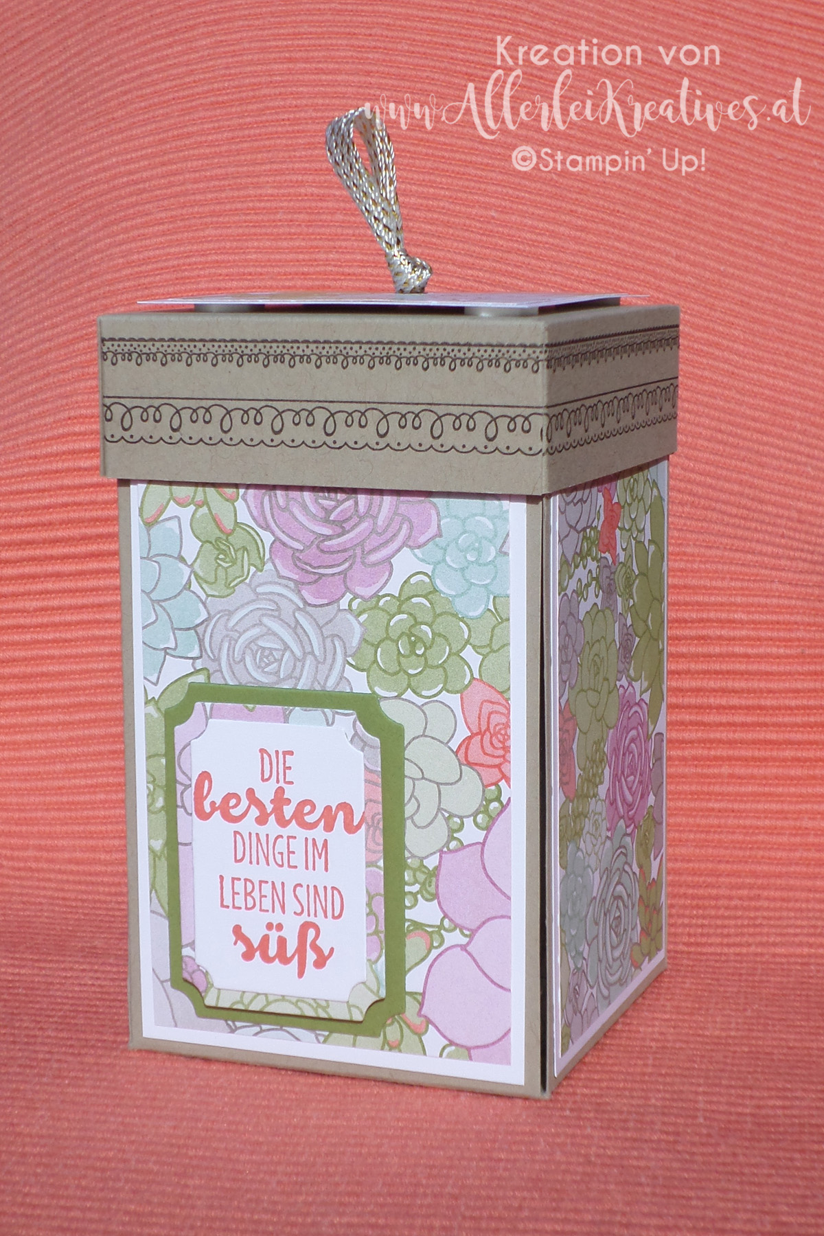 Da es sich um die Überverpackung eines Gemeinschaftsgeschenks handelt ist der untere Teil eine Schublade, in welcher 15 – 20 Karten/Kuverts im Format C6 platz finden.